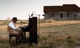 Kjartansson’s interest in music often leads him to focus on the persona of the performer. The Man (still shown above) presents a portrait of American blues musician Pinetop Perkins playing an upright piano improbably situated in a field just outside of Austin, Texas. Born in 1919 in Belzoni, Mississippi, Perkins began playing guitar and piano during the rise of the Delta Blues.