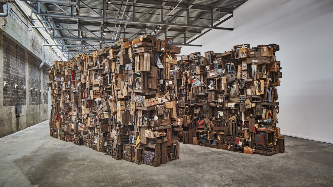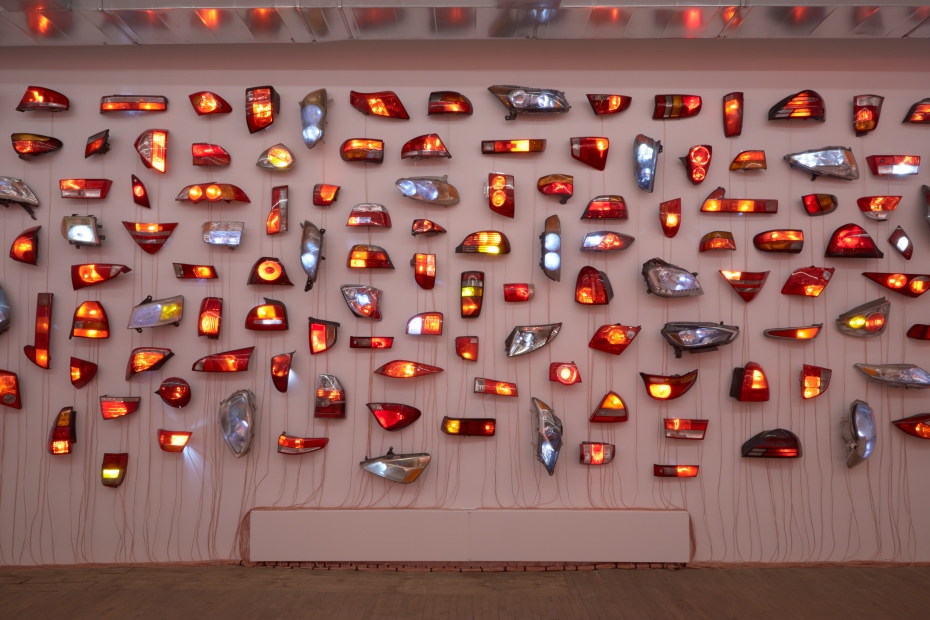 Participating artists include El Anatsui (b. 1944, Anyako, Ghana), Madeline Hollander (b. 1986, Los Angeles), Ibrahim Mahama (b. 1987, Tamale, Ghana), Karyn Olivier (b. 1968, Port of Spain, Trinidad and Tobago), Ebony G. Patterson (b. 1981, Kingston, Jamaica), and Joe Wardwell (b. 1972, Chapel Hill, NC). Making visible the often invisible forces that shape human experiences, these artists reflect on the systems of industry, nature, and society in monumental artworks. For some, recycled objects expand ideas of materiality and industry in daily life: Anatsui collects bottle caps and other refuse to form glittering, tapestry-like sculptures; Hollander programs automobile head and taillights to blink with the movement of traffic; and Patterson makes intricate collages of flowers, birds, butterflies, and figures. Olivier and Mahama collect used clothing and crates, respectively, to build towering sculptures that reflect on human persistence, labor, and ingenuity. Wardwell, a Boston-based artist, will create a new, site-specific installation in dialogue with the rich history of labor songs. Together, these artworks capture the power of reuse, resilience, and reclamation, celebrating a revival of the everyday at monumental scale.