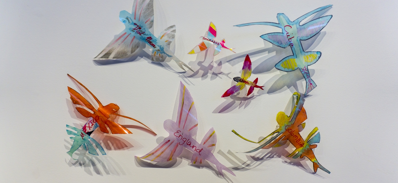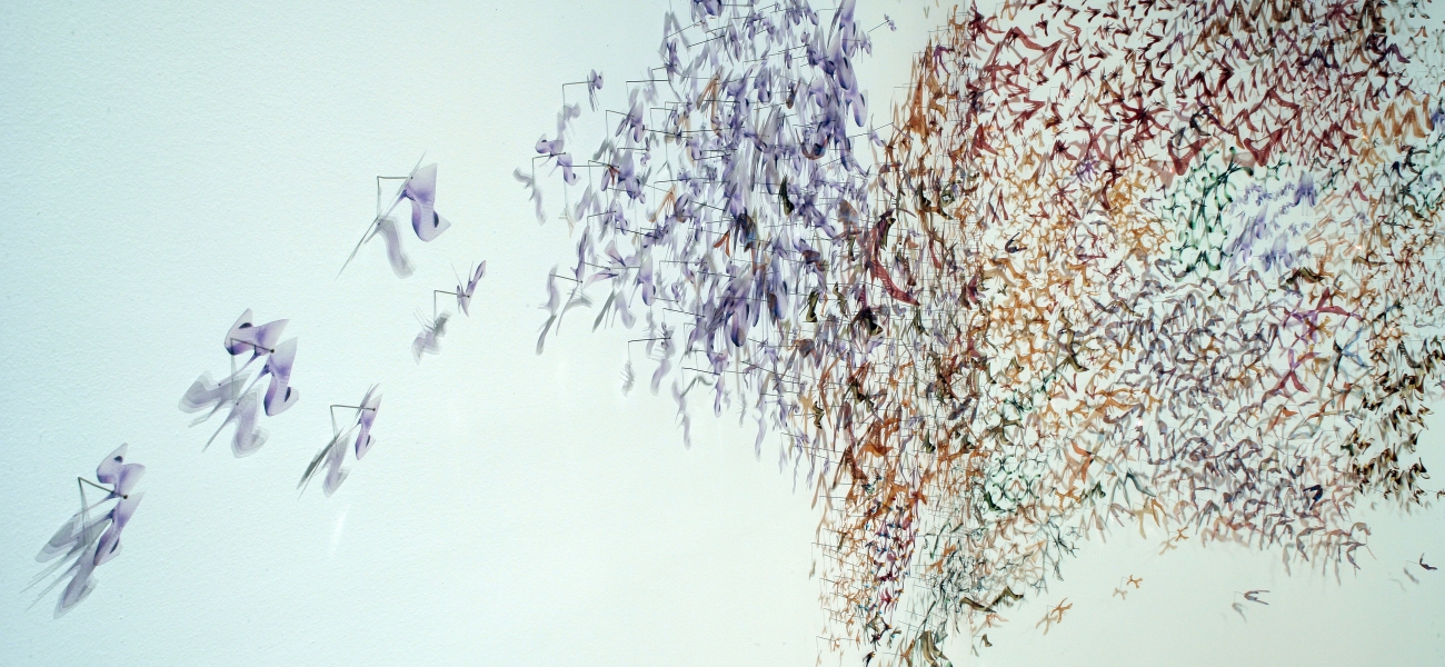 Houston-based artist and educator Bennie Flores Ansell’s interest in migration, flight, and movement makes a bold appearance at the ICA starting this spring. The ongoing themes in Ansell’s art come from her own personal journey from the Philippines to the United States at a very young age. Her intricate installations look like maps, topographical views, and swarms of butterflies but upon closer inspection reveal surprising hidden imagery. For her Boston debut, Fish Out of Water, visitors will be encouraged to reflect on their own personal family journeys by using a mirror-symmetry drawing technique to create a collection of flying fish that will soar throughout the museum’s Bank of America Art Lab walls.