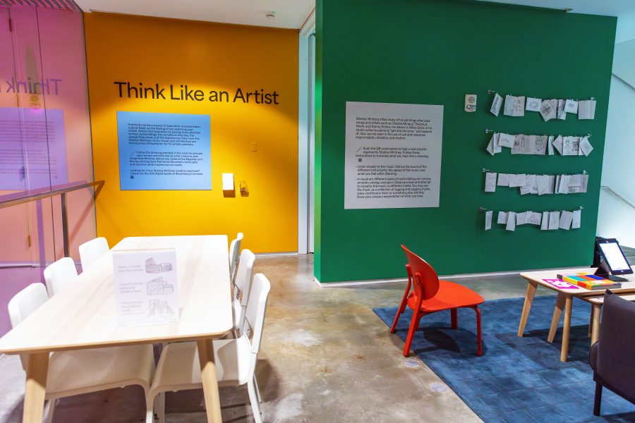 This interactive installation, presented alongside Stanley Whitney: How High the Moon, invites visitors to explore two of Whitney’s creative influences: music and architecture. Featuring a playlist of jazz songs that have inspired Whitney, as well as models of Egyptian and Roman architecture referenced in his paintings, this activity invites participants to listen, look, draw, and think like an artist.