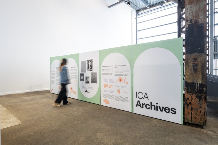 To that end, the ICA is undertaking a major project of processing its archival materials to make them accessible. The project involves reviewing, organizing, describing, preserving (if necessary), and inventorying archival materials—including documents, posters, catalogues, artwork, recordings, photography, and more—spanning the ICA’s nearly 90-year history. With more than 550 linear feet of material (an archival form of measurement meaning the length of materials if you were to lay them out side-by-side), this work is a significant undertaking, projected to continue through 2026. Over time, materials will be arranged into logical collections, finding aids will be created, and digitization efforts will enhance accessibility. Initial processing and organization will soon allow researchers to begin engaging with the ICA’s archives, offering new insights into the institution’s legacy and contemporary art’s evolving narrative.
