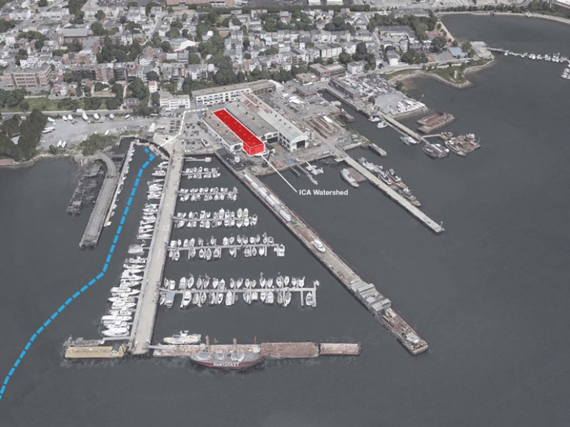 Located in the Boston Harbor Shipyard and Marina in East Boston, the ICA Watershed transforms a 15,000-square-foot, formerly condemned space into a new civic and cultural asset. Award-winning firm Anmahian Winton Architects designed the renovation of the derelict former copper pipe facility, conserving its industrial feel while restoring the building for new use.
