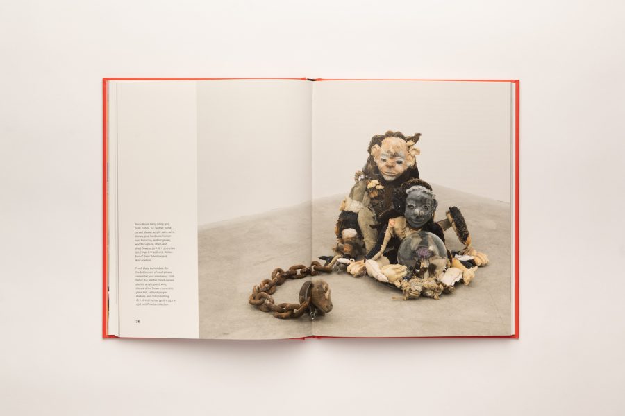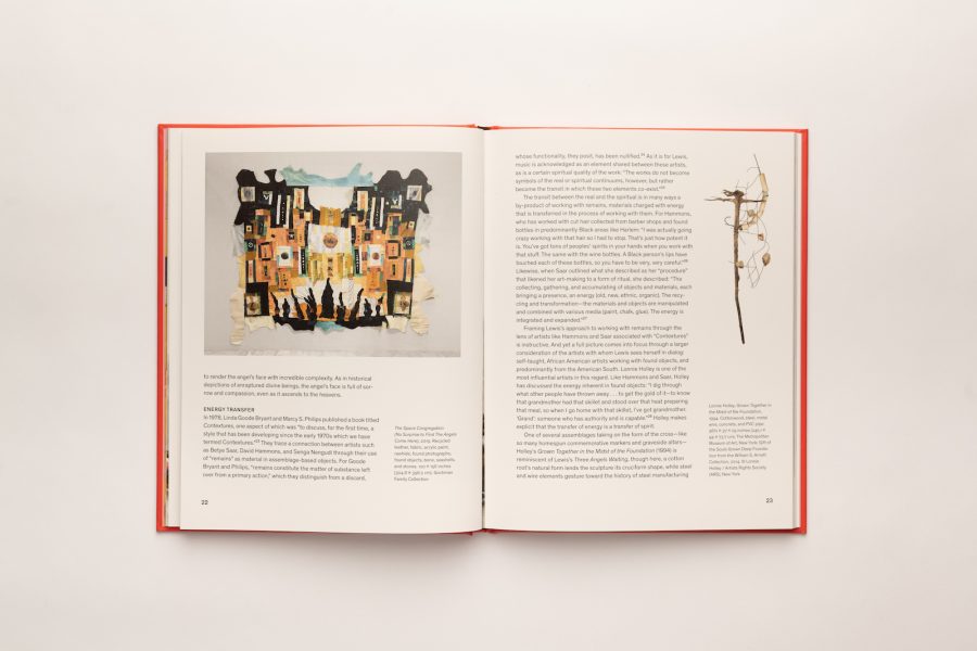 This is the first monograph dedicated to the sculptural practice of the Canadian artist Tau Lewis (born 1993). Lewis transforms found materials into intricate soft sculptures, quilts, masks and other assemblages through intensive processes such as hand sewing and carving. A self-taught artist, Lewis’ practice is directed at healing personal, collective and historical traumas through the repetitive forms of creative labor she employs. She forages for materials charged with meaning—old clothing and photographs, as well as driftwood and seashells—which she often collects from her surroundings in Toronto, New York or outside her family’s home in Negril, Jamaica. Lewis’ upcycling relates to forms of material inventiveness practiced by diasporic communities, wherein working with objects close at hand is a reparative act to reclaim agency. Throughout, Lewis’ interest lies in honoring and advancing these diasporic traditions and exploring, as she has said, “the transference of energy and emotion that occurs when an object is made by hand.”