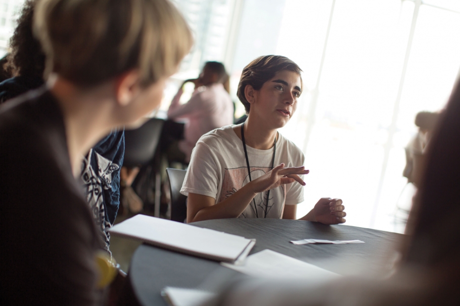 In recent years, contemporary art has seen a growing fluidity between rigid, strictly defined categories of art. Many artists have increasingly embraced methods of performance, collaboration, and public practice, placing human experience and interaction over object-making as the center of their artistic activity. Similarly, teen programs in museums often center around expansive modes of collaboration, and provide new models of exchange between audiences, artists, and institutions. As an audience, teens are at a transitional point in their own lives standing between childhood and adulthood. As such, they are often challengers of the status quo, defined labels and social demarcations, and on the edge of new ways of thinking as the harbingers of cultural change. The 2015 Teen Convening brought together teens, educators, and Foster Prize artists to consider the open possibilities inherent in challenging defined categories of artistic, educational, and social practice.